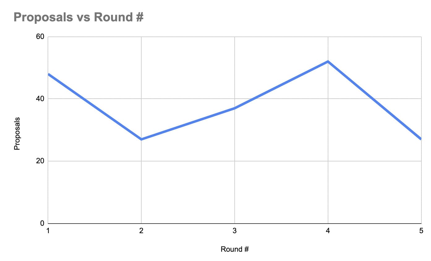 At the time of writing (06/18), 18 proposals have had enough time elapse since being funded to make a judgement on whether or not they executed. So far, only 1 out of 18 proposals has had a no-show. Overall, quality of proposals corresponding to amounts funded are still desirable. With the launch of Nouns Combinator (25 ETH single winner house), we hope to see more ambitious proposals be submitted.