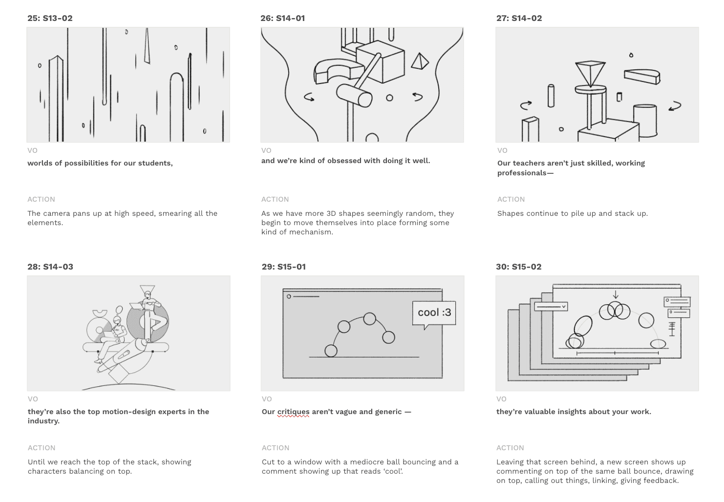 While we work on locking down the script and recording the voice-over, we’ll also be working on creative direction, storyboards, design, sound, and animation.