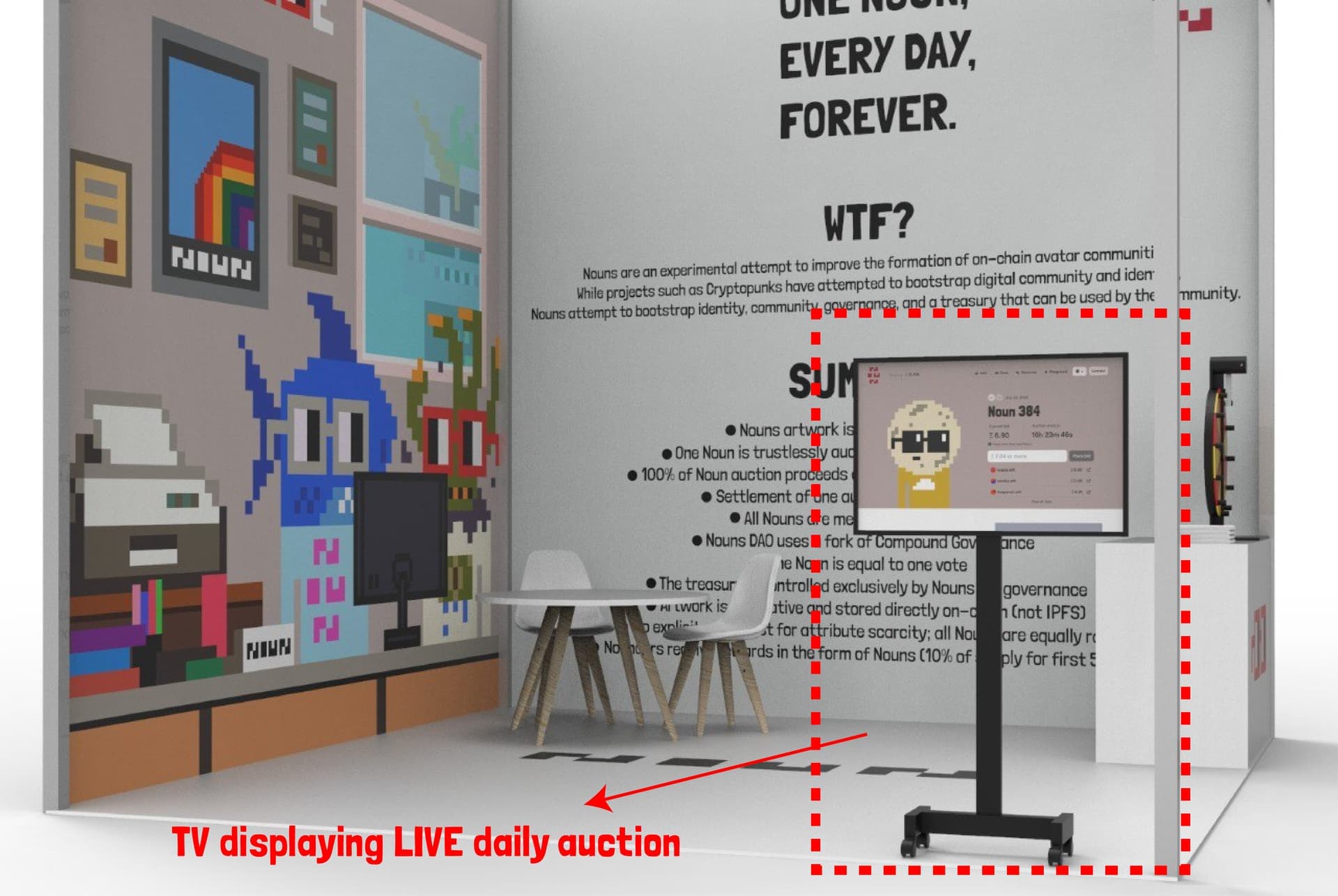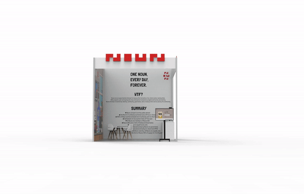 Nouns Booth @ COMEX Singapore will be an experience for visitors where they will be able to understand Nouns by engaging with the booth. The booth serves as an activation and brand recognition that consists of at least 5 engagement points. By interacting with the booth, visitors not only get to understand what Nouns is but also stand a chance to win themselves some Nounish goodie which helps to solidify the brand recognition. The engagement points are designed to instill a memorable user connection to Nouns.