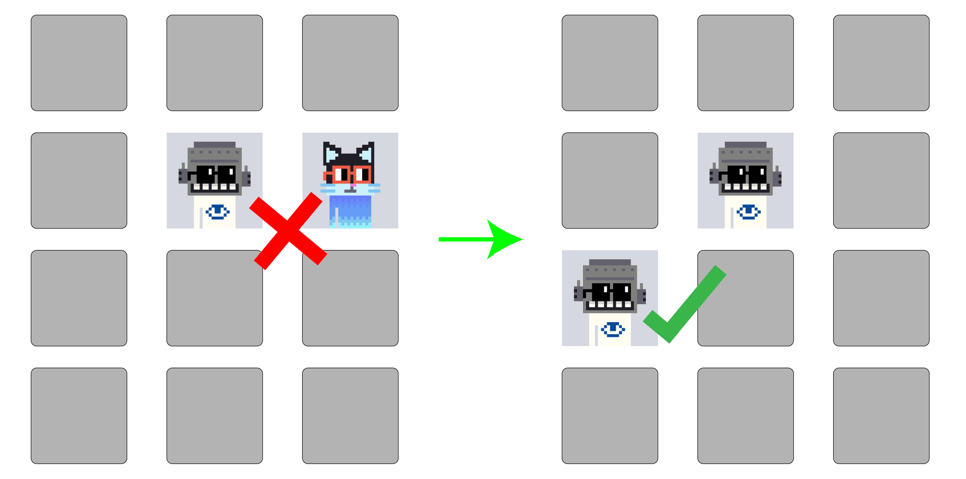 The objective for this engagement point is to have visitors familiarize/recognize Nouns artwork. This mini game objective is to match all pairs of Nouns within a given time-frame. There will be 6 different pairs of Nouns (made into cards), every one of them will be shuffled and placed faced down. At every one time, player is able to flip 2 cards, if they are a match, player is allowed to continue and flip another 2 cards but if they do not match, player have to place those 2 cards back into face down position before flipping open another 2 cards. Game ends when player matches all 6 pairs of Nouns. Player will be qualified for a chance to win a Nounish goodie if completed within the given time-frame.