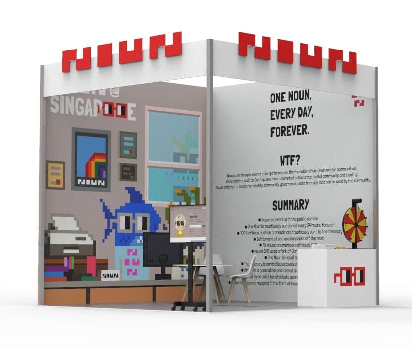 It will be a IRL experience at COMEX Singapore to spread Nouns to a wider audience, both crypto/NFTs native and not. It’s a IRL brand recognition that aims to create authentic and memorable user connection. It will serve as an activation, a proliferation pod to grow the Singapore Nouns community; to onboard new contributors.