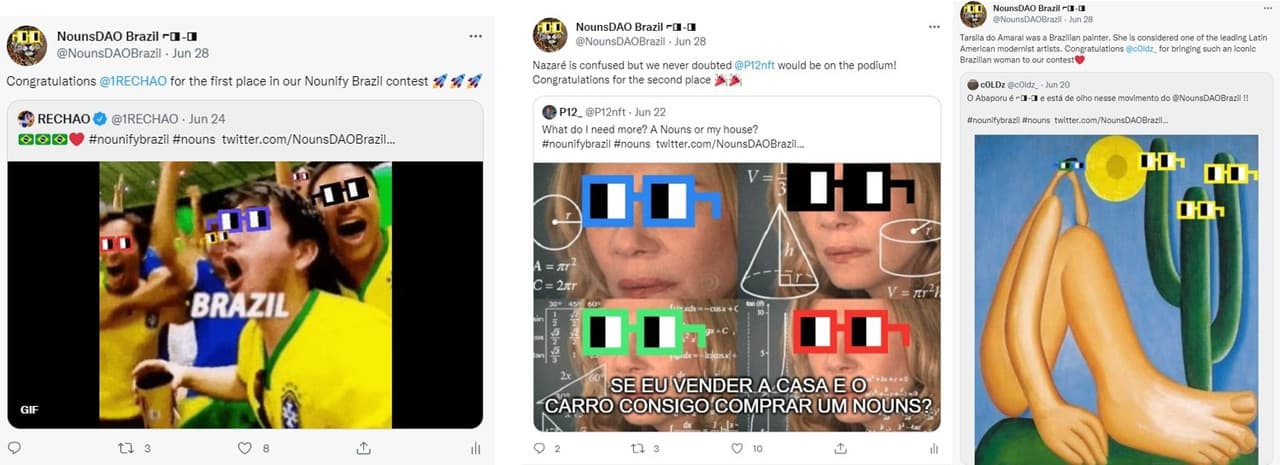 We are planning a Nouns week in October 2022 with simultaneous nounification of four capital cities from north to south of Brazil. The cities are Fortaleza (2,68 million), Rio de Janeiro (6,7 million), São Paulo (12,33 million), and Porto Alegre (4,4 million). Local groups from NounsDAO Brazil will execute the project under the supervision of DAO's founders.