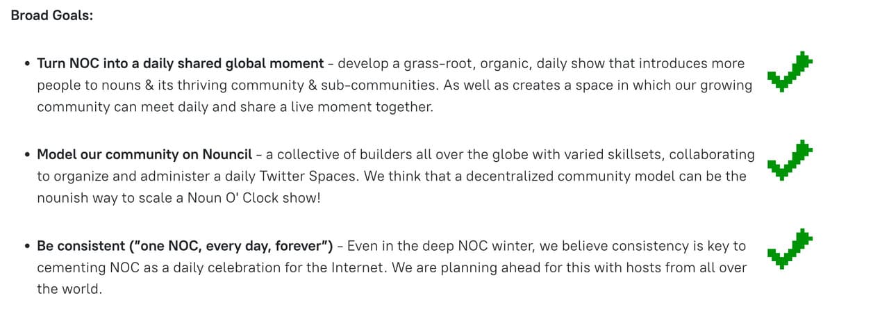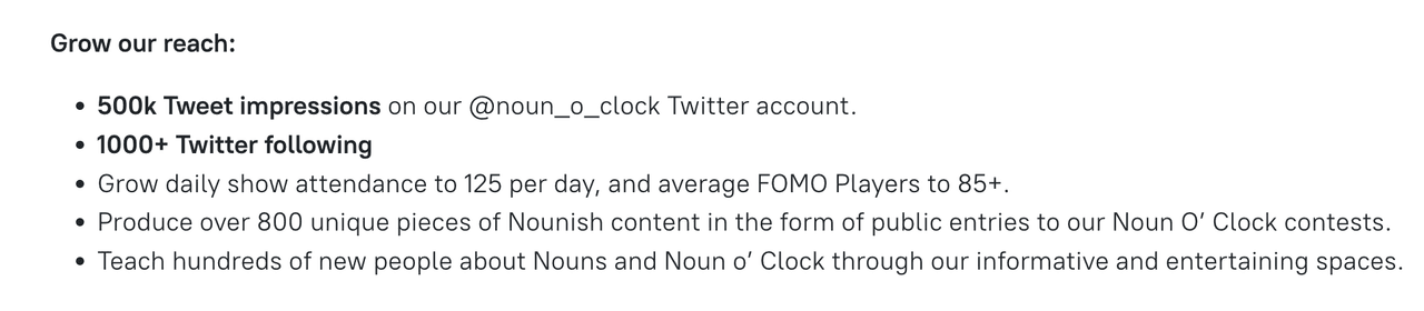 We represent a group of committed Nounish builders with a good track record of success, and we are asking for the DAO's trust, as we lean into a very successful concept and continue to improve, grow and scale this new platform centred around the daily Noun O' Clock.