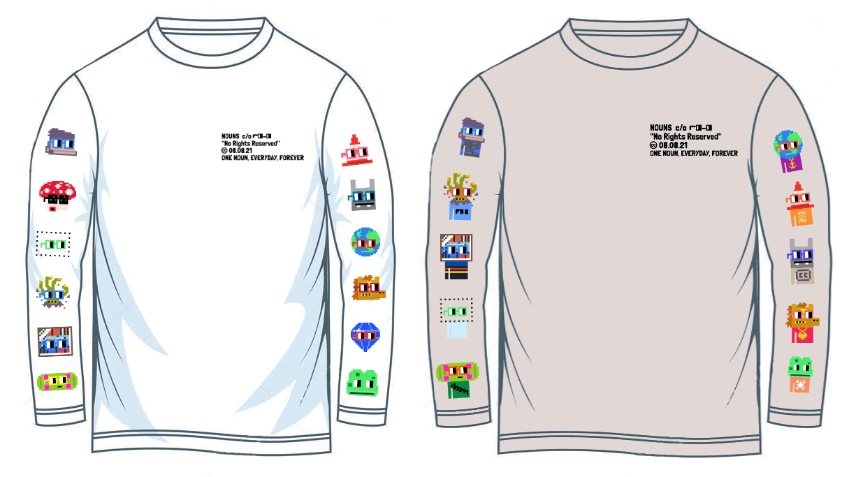 Nouns Non-Fungible Streetwear will be available for purchase on-site and online via credit card or ETH. For online orders, shipments will be handled through Shopify.