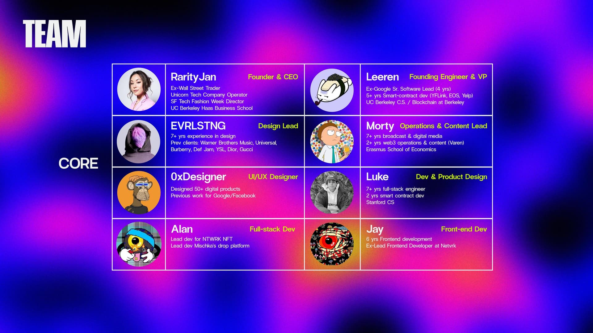 Originally inspired by Nouns’ creative governance and community model, we want to become an incubator for up-and-coming streetwear designers and NFT artists and recreate the “Nouns Virtuous Cycle” for the budding web3 streetwear industry.