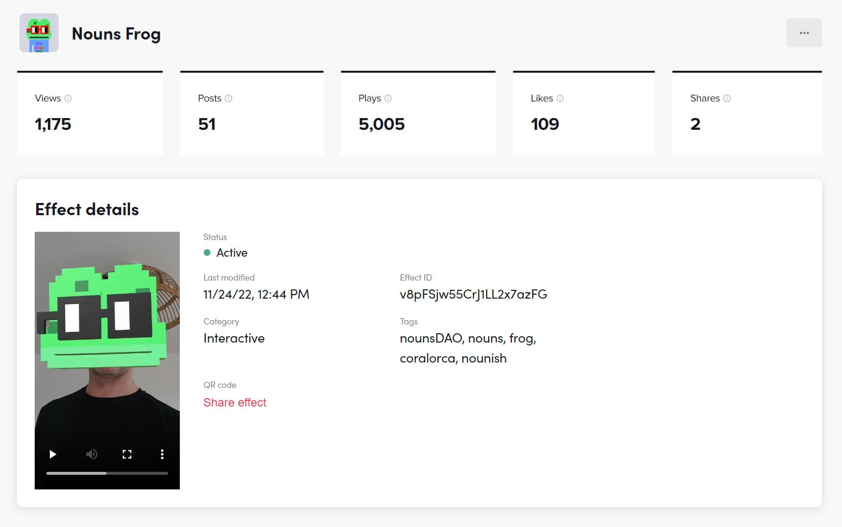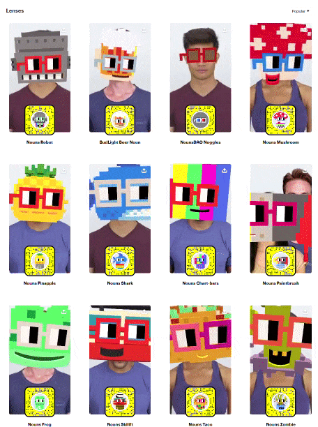 The Snap filters I created previously were used by the Dota2 Esport team (See Grand Finals livestream), the Noun Square team (see PropHouse winners interview), Nounish videos (currently in production) and can be seen in some on-chain proposals and memes across Twitter and Discord.