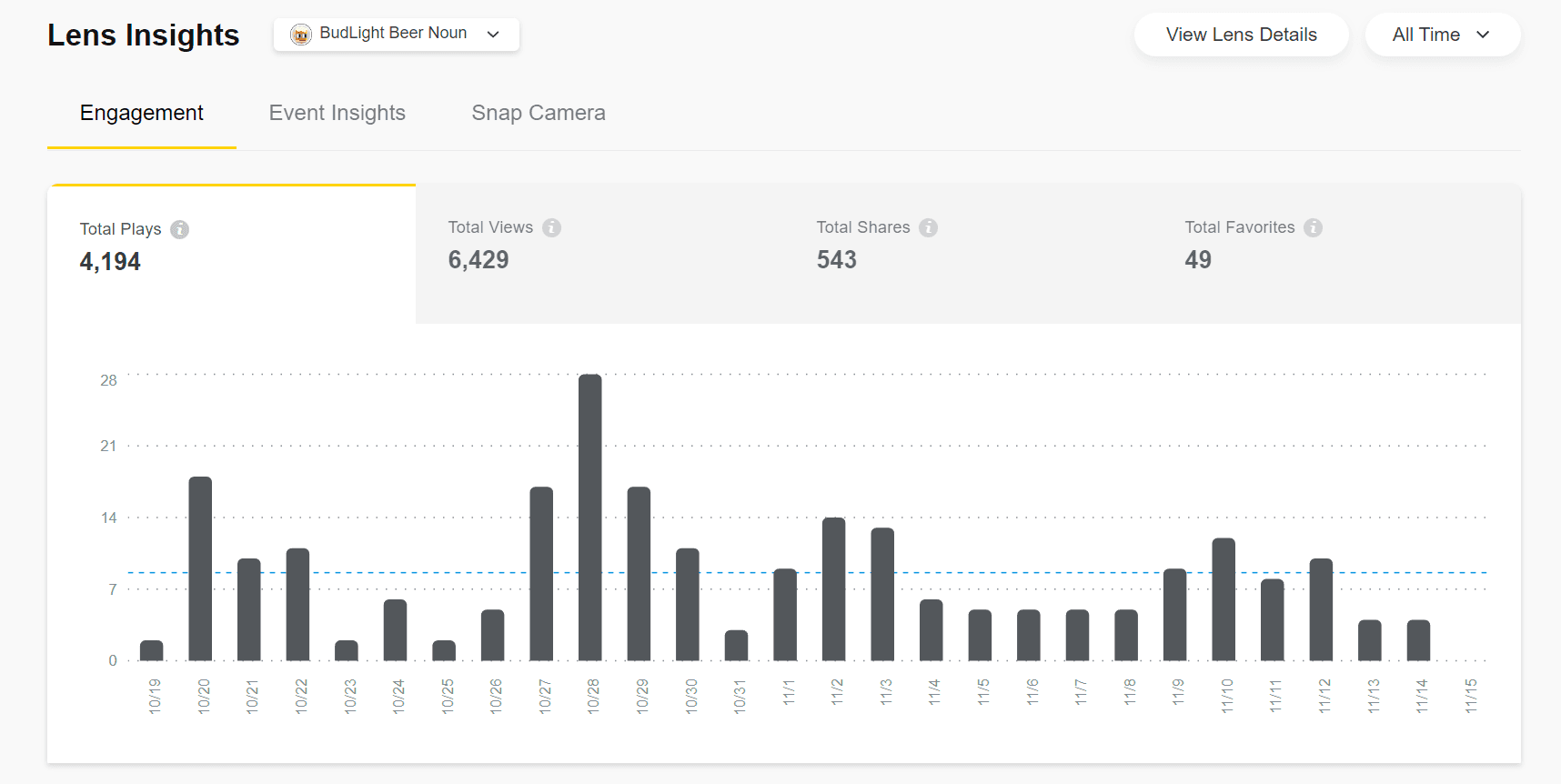 Here are some metrics from the Snapchat filters created with Prophouse funding and some recently published filters on TikTok.