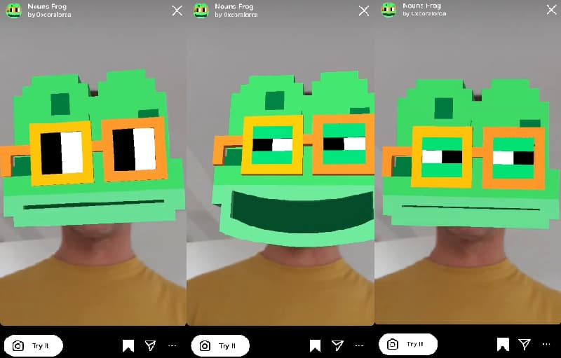 From a technical standpoint Snap Lens Studio > SparkAR > TikTok Effect house. My goal is to make each Noun head as consistent as technically possible across all different platforms. See Frog head above.