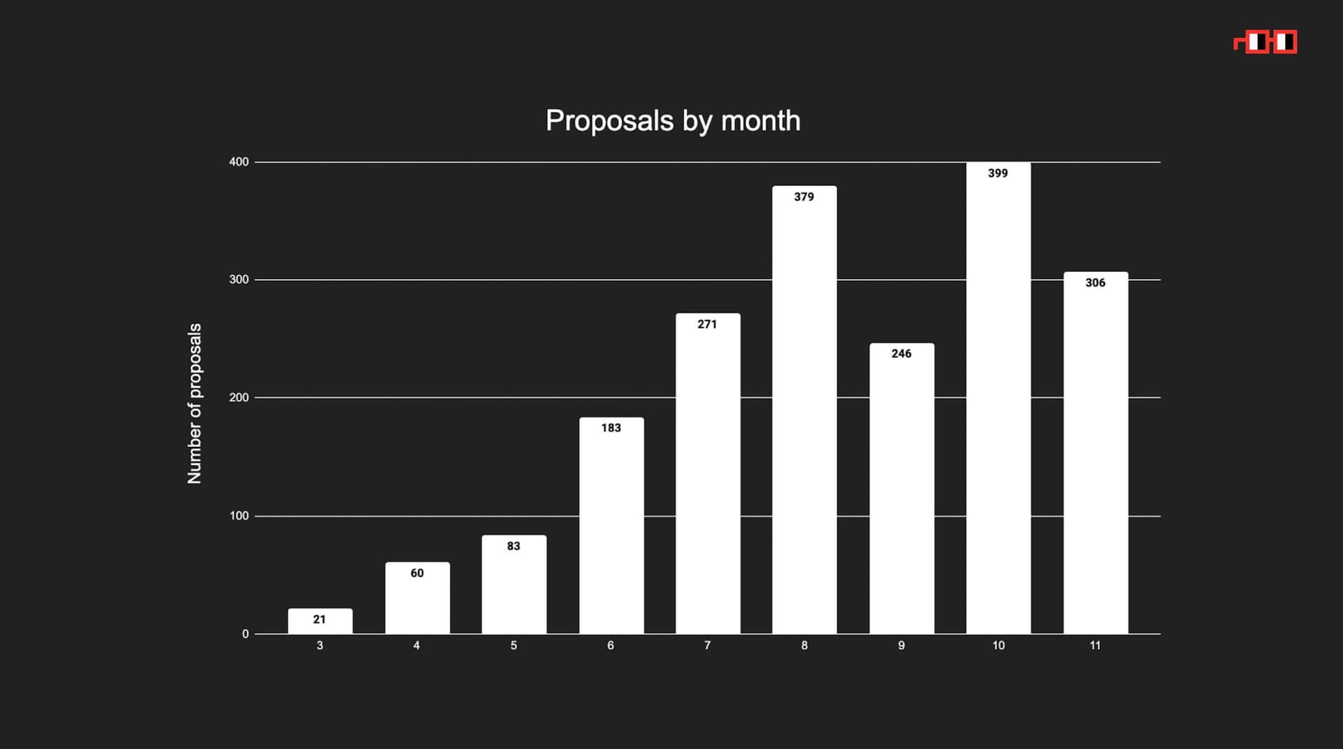 The most important outcome of Prop House for Nouns has been its ability to onboard a large percentage of the most impactful builders in the ecosystem. More than funding, the core feature of Prop House is about activating builders. Whether it be for folks who had never heard of Nouns before or those who were just hanging around, Prop House was the mechanism that took them from inactive to building within the ecosystem.