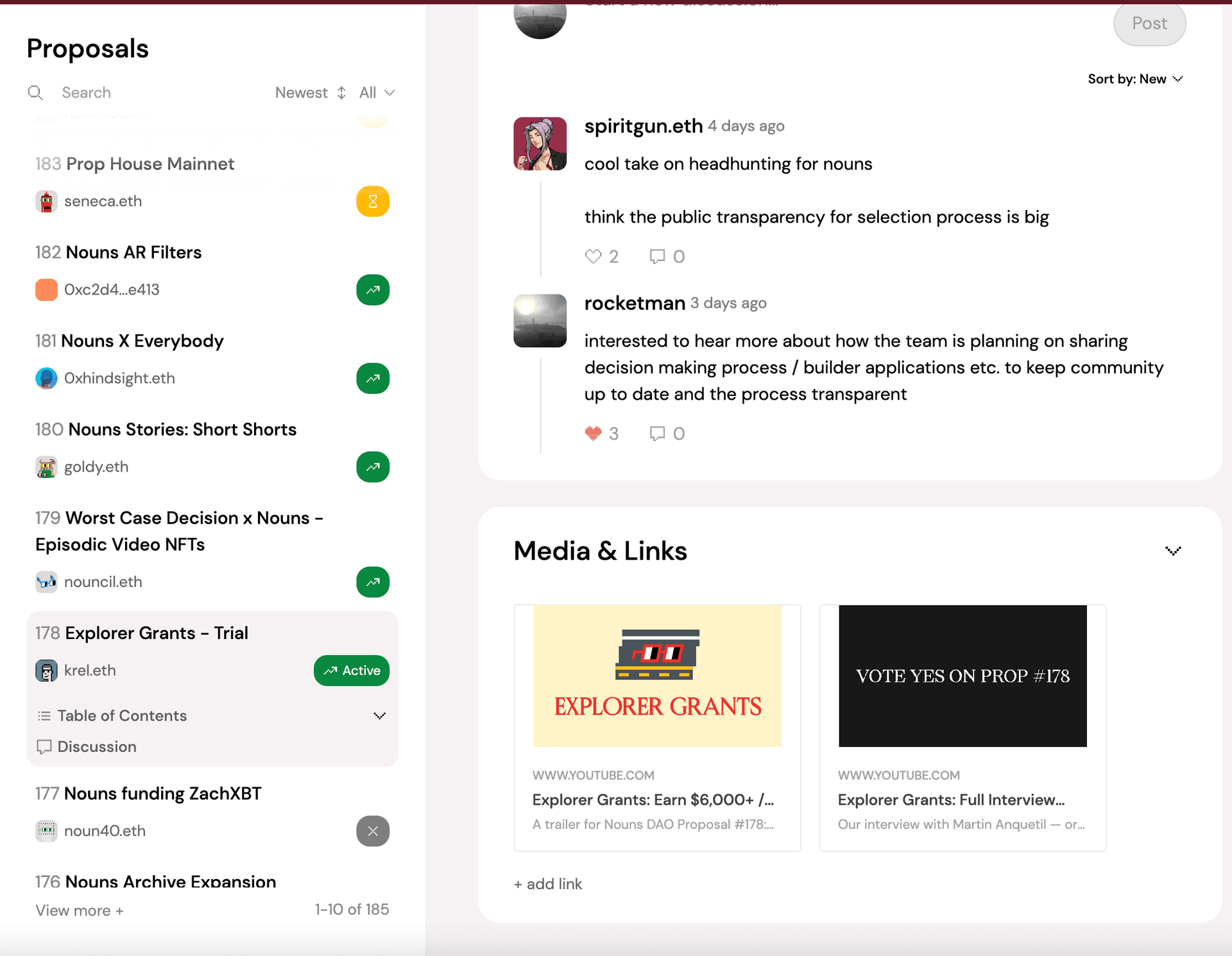 We will attach more information to proposals, such as FAQs, comments, relevant links, conversations from other platforms, video attachments, and more. We're currently working with @maty.eth on integrating data from proposals.wtf.