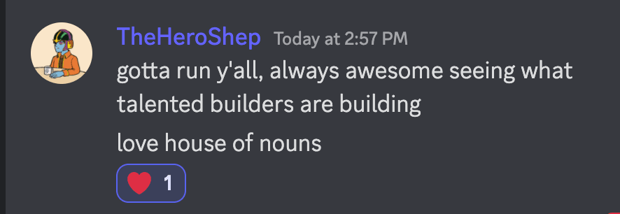 Happy to answer any questions on Twitter, on https://houseofnouns.wtf, or in the Nounish Builders Discord etc.