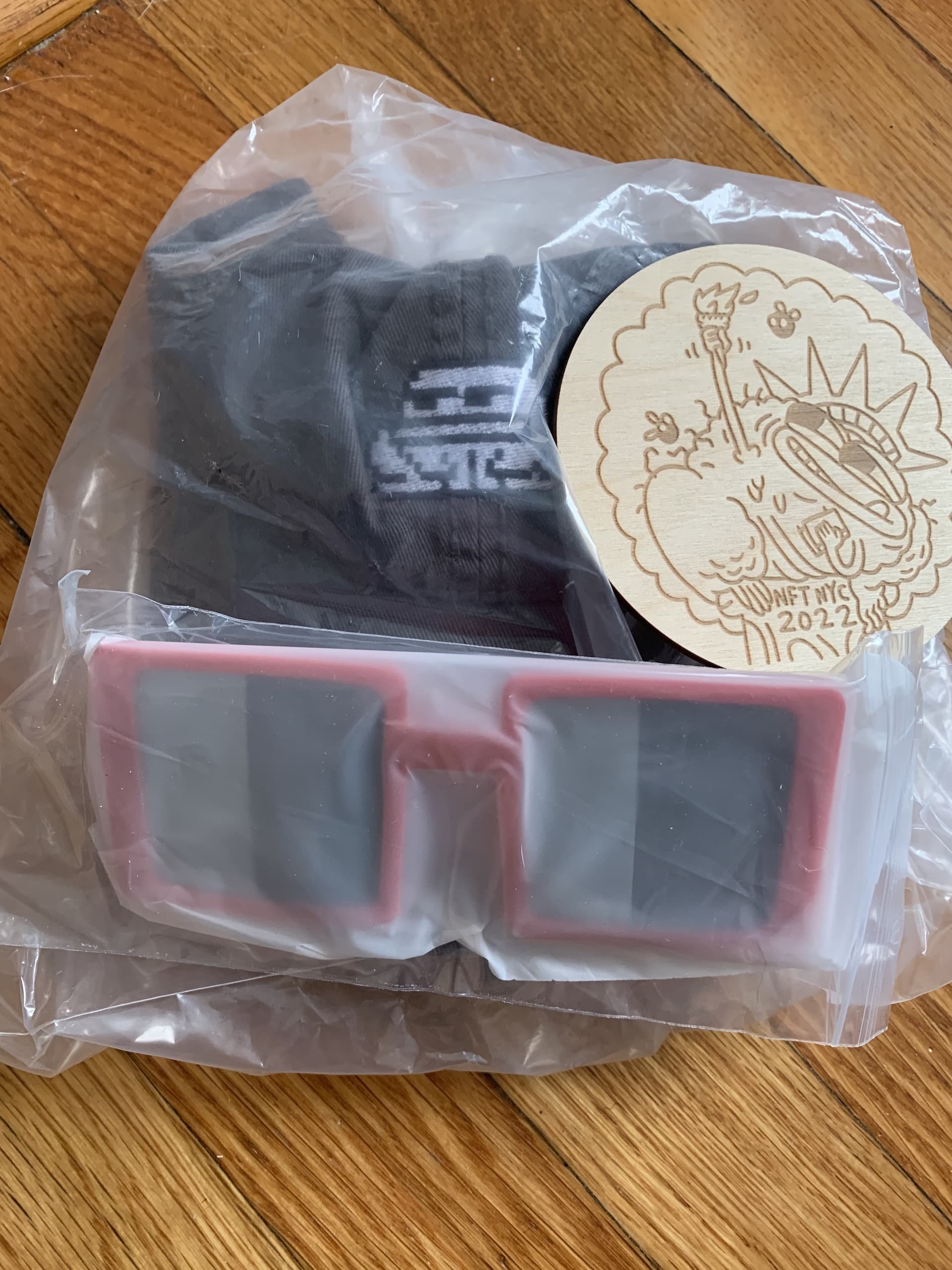 Reward bundle: CrypToadz Hat + Noun Glasses + NFT NYC Coaster