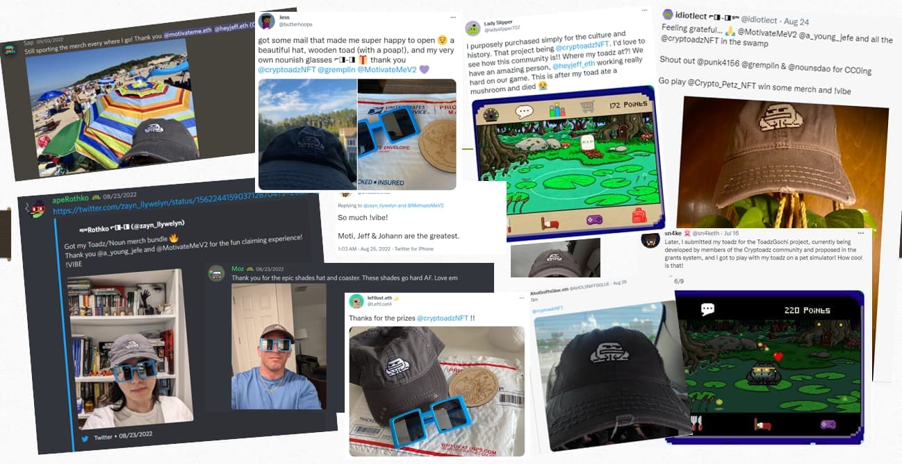 As an example, we’ve successfully rewarded 80+ unique CrypToadz players with a CrypToadz hat and pair of Nouns glasses to those who reached level 10 with a CrypToad through the interactive app. Everyone shared how much they loved this event!