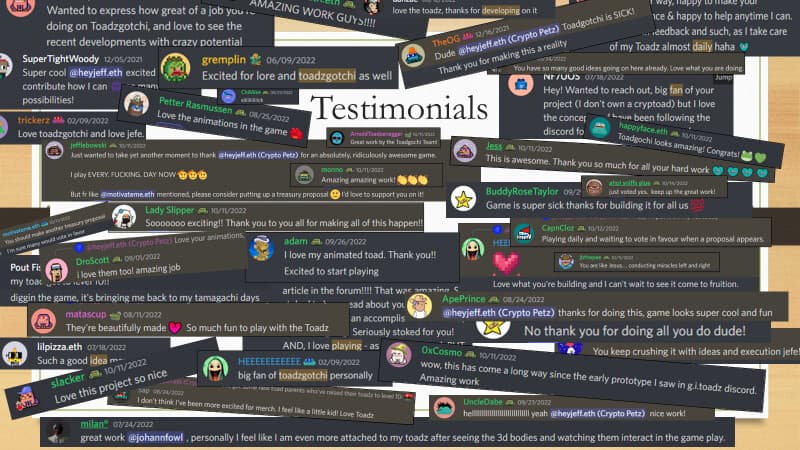 “Big fan of Toadzgotchi personally; Love what you're building.”