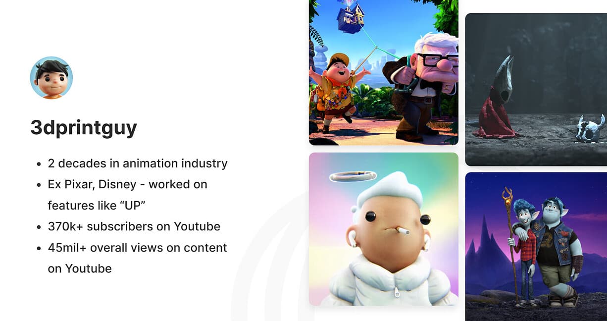 With over 2 decades of experience in the business, including working on films like Up, he has been tugging on your heart strings over many years. His youtube page has content eclipsing 45 million views and his characters and plots have shown the ability to capture the world’s attention. He has also demonstrated an ability to release relevant content based on trending topics as seen with his most recent animation about ChatGPT (5k+ likes, 77k+ video views on twitter).