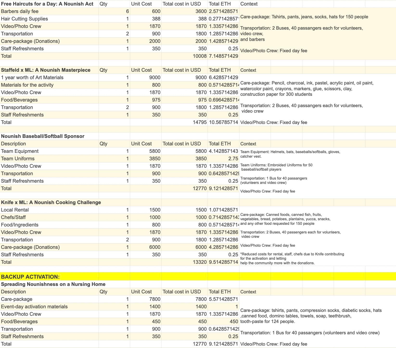 A total of 70.86 ETH to fund the following 4 months of activations, part-time marketing/content creation team, and compensation for core team members.