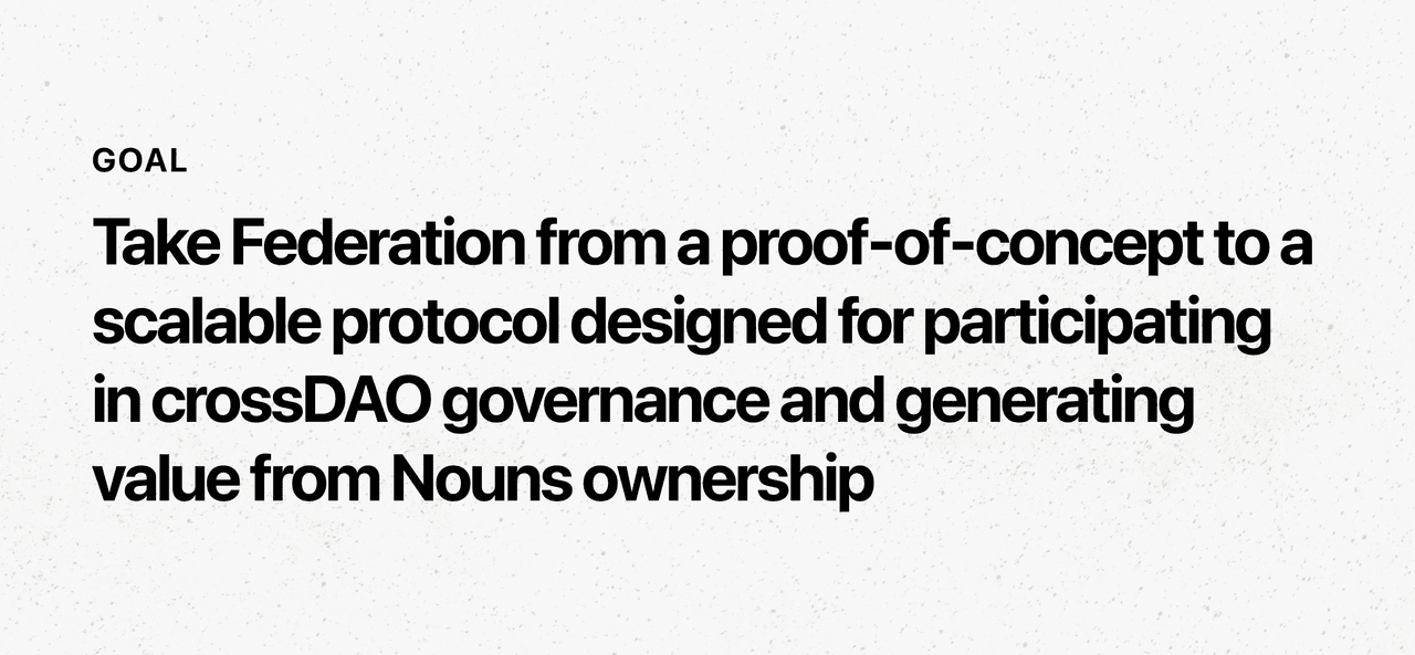 We believe it’s time to take Federation from a POC to a scalable protocol designed for participating in crossDAO governance and generating value from Nouns ownership.
