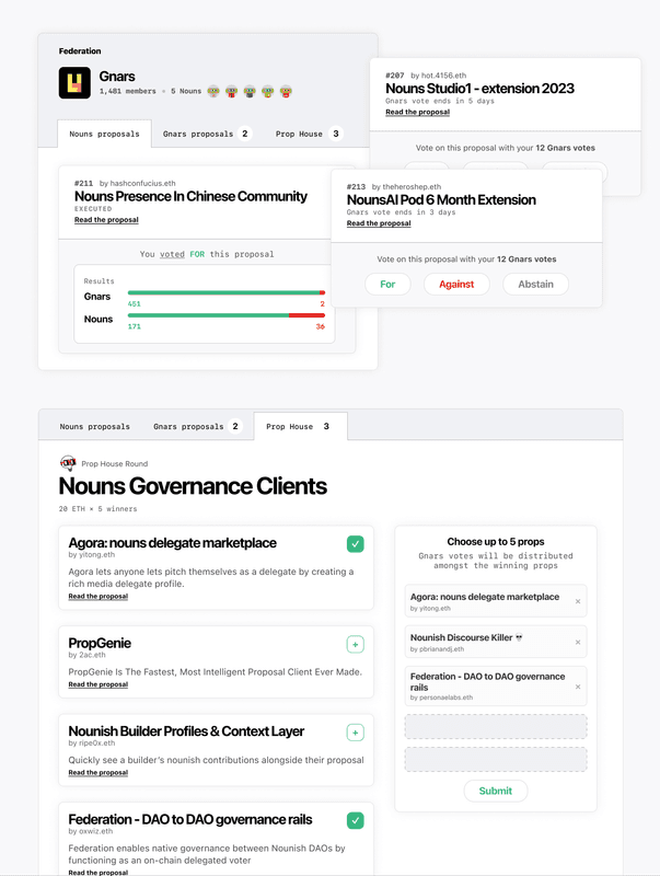 Moving forward we are extending Federation to support all forms of governance in the ecosystem such as integrating with Prop House and Nouns Builder, while also providing opportunities for owners of Nouns to generate value from them through new experiments like vote bidding.