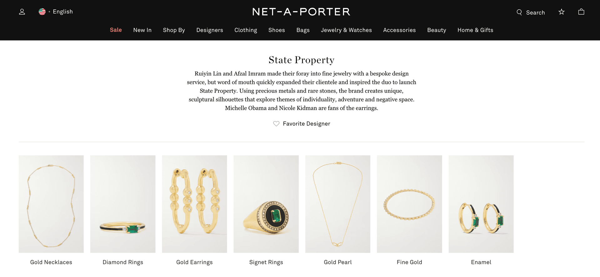 Established since 2015, State Property is a fine jewellery label whose minimalistic and modern designs have been worn by Michelle Obama, Nicole Kidman, Taylor Swift, and many other celebrities. Their jewellery have also been featured in magazines including Vogue, Tatler, Cosmopolitan, and WWD. Based in Singapore, their distribution network stretches across the Middle East, EU, UK, and US (including Net-A-Porter).