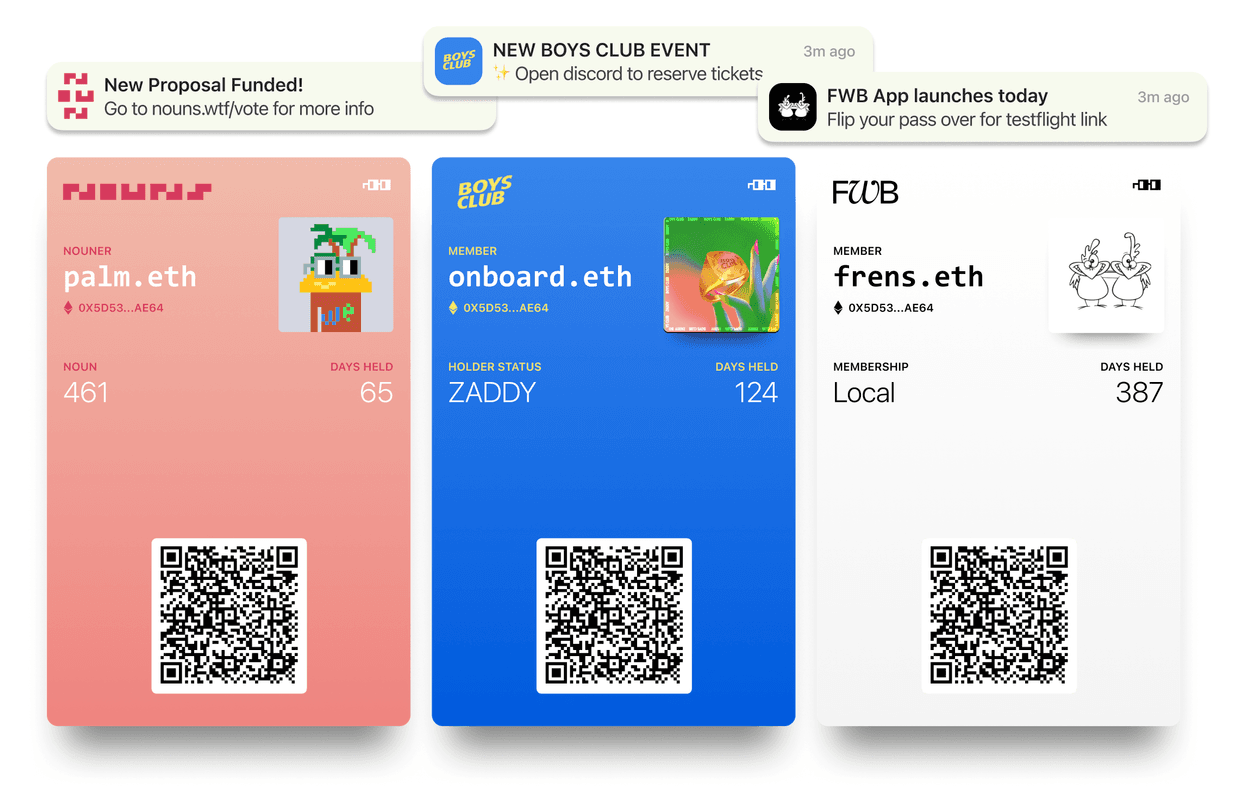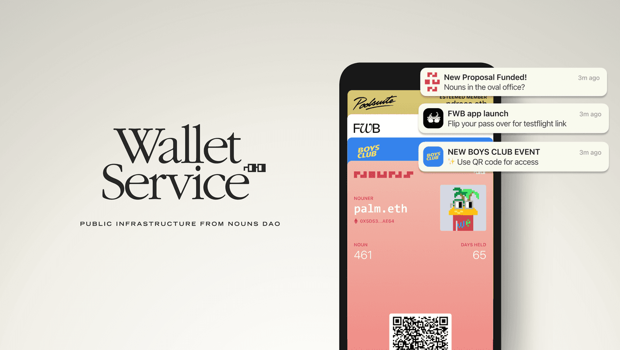 A new Nouns service to place NFTs in Apple & Google Wallets, unlocking the ability for communities to send push notifications to token holders and for simple event token gating