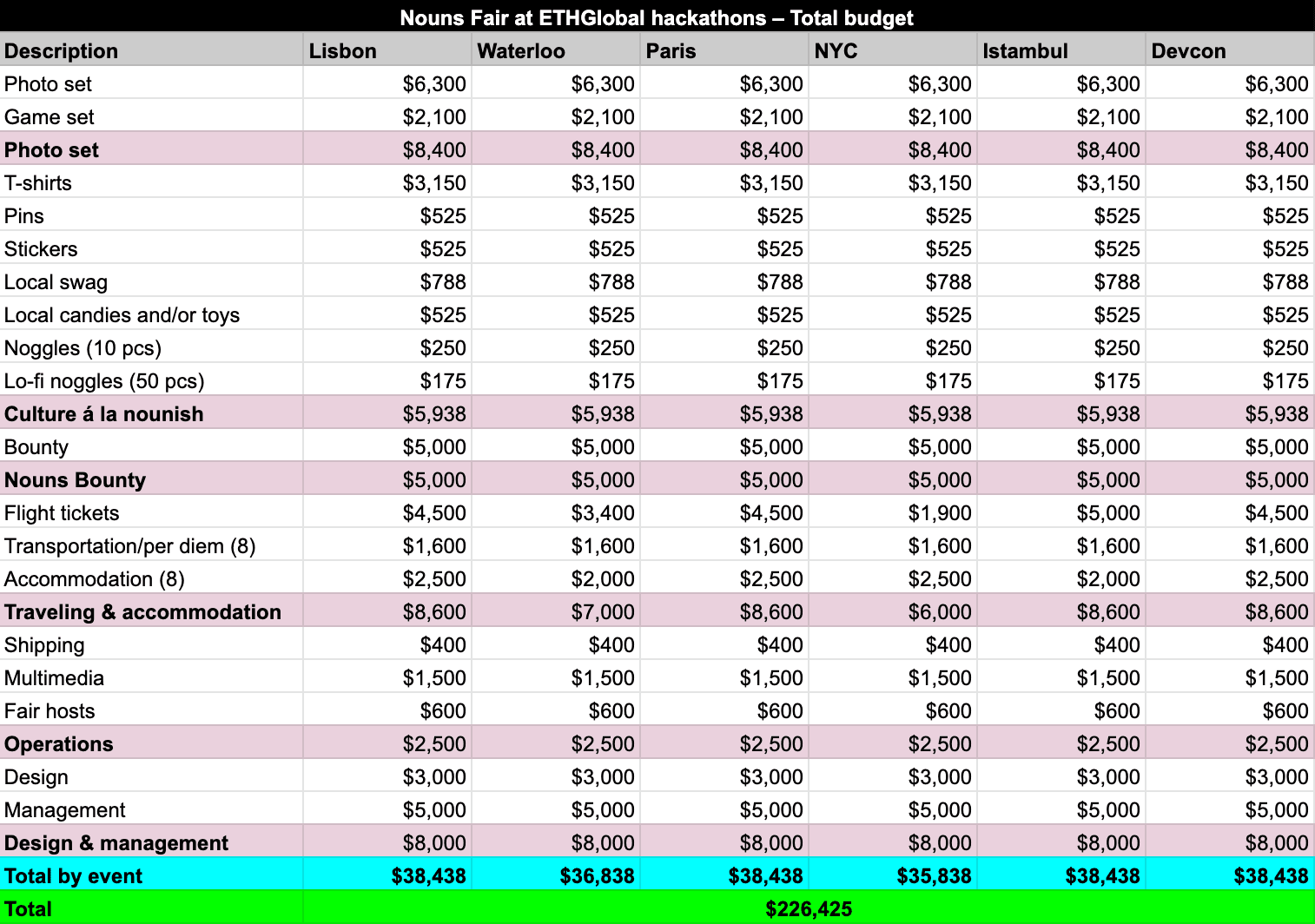 Note 1: The Photo Set, Culture à la Nounish, and Traveling & Accommodation sections are considering a 5% buffer to cover potential changes in prices and schedules throughout the year.