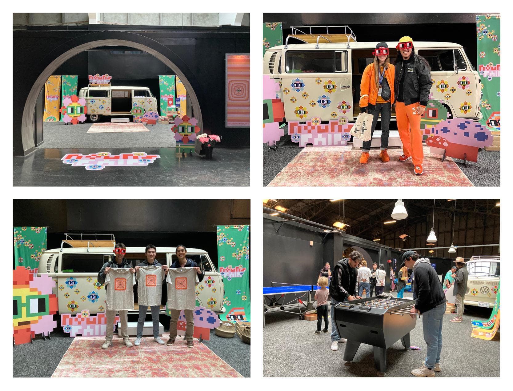 We've done it differently in each country. In Mexico City, we did it with rustic hand-painted fair stands, games, candies, and nouns piñatas. In Bogota, with a high-quality printed stage highlighting local cultural imagery along with traditional games, toys, and candies. And in San Francisco, with a 60's flower power VW bus and custom Chinese fortune cookies. All this with a pinch of swag.