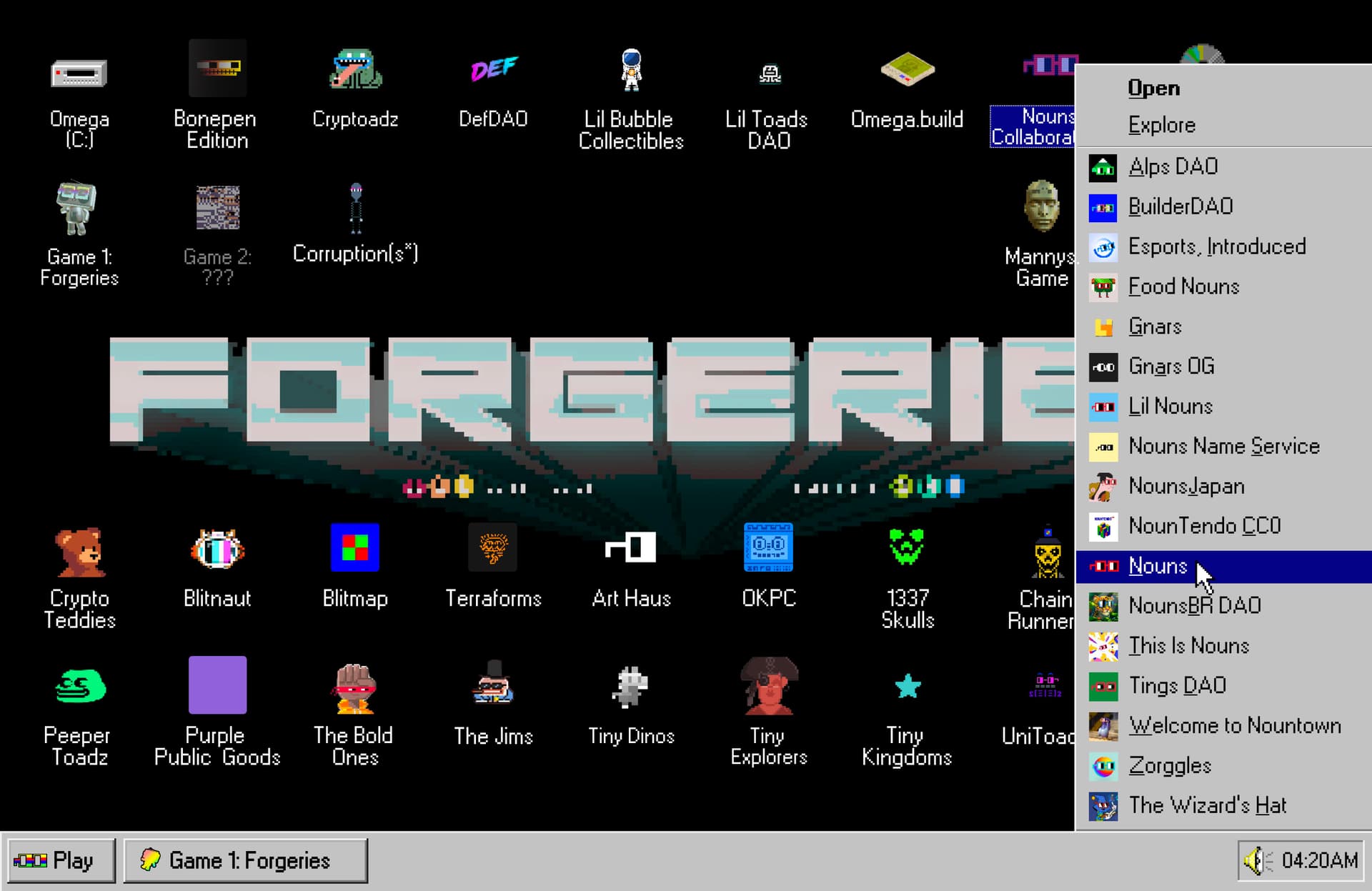 Forgeries - ALL are FAKE except ONE is the debut release for Omega, a brand new public goods hyperstructure deployed on Ethereum by Gami, Iain, Emre and Jordan – ie. Omega is the console and Forgeries is a cartridge.