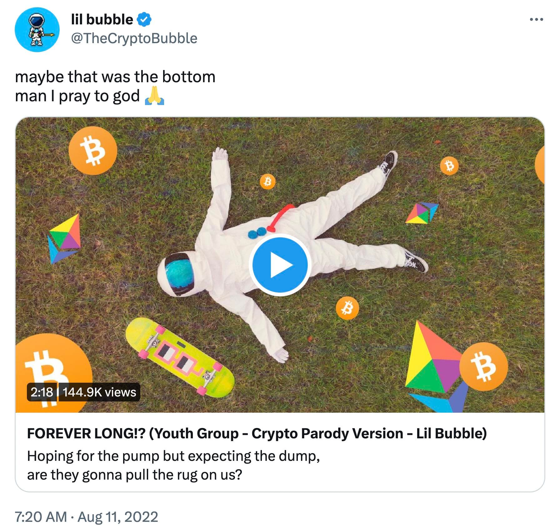 Lil Bubble is an established Web3-native character who has been releasing satirical songs and music videos for the community since 2019. His songs and remixes put a tongue-in-cheek spin on market events and have clocked OVER 10 MILLION VIEWS, adding to the cultural fabric of the space with a comedic blend of music, video and niche subject matter.