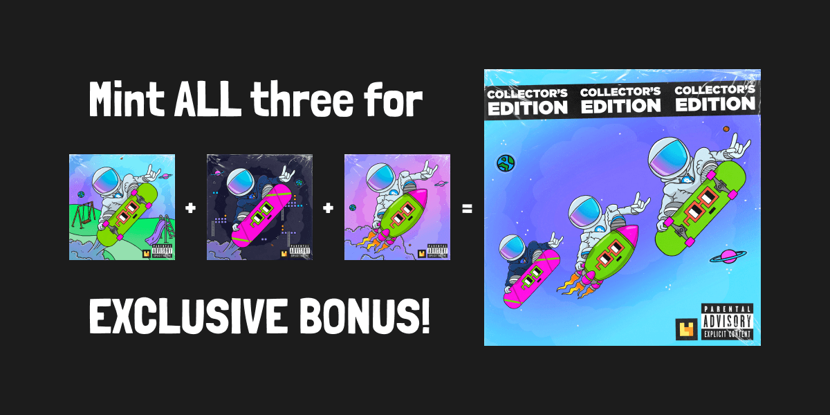 Bonus 1: Collectors who mint all three singles to complete the set will unlock a free to claim Collector's Edition EP. This is our way of saying an extra thank you to those who support Lil Bubble, the Nouns ecosystem, and nounish proliferation by the Gnars community.