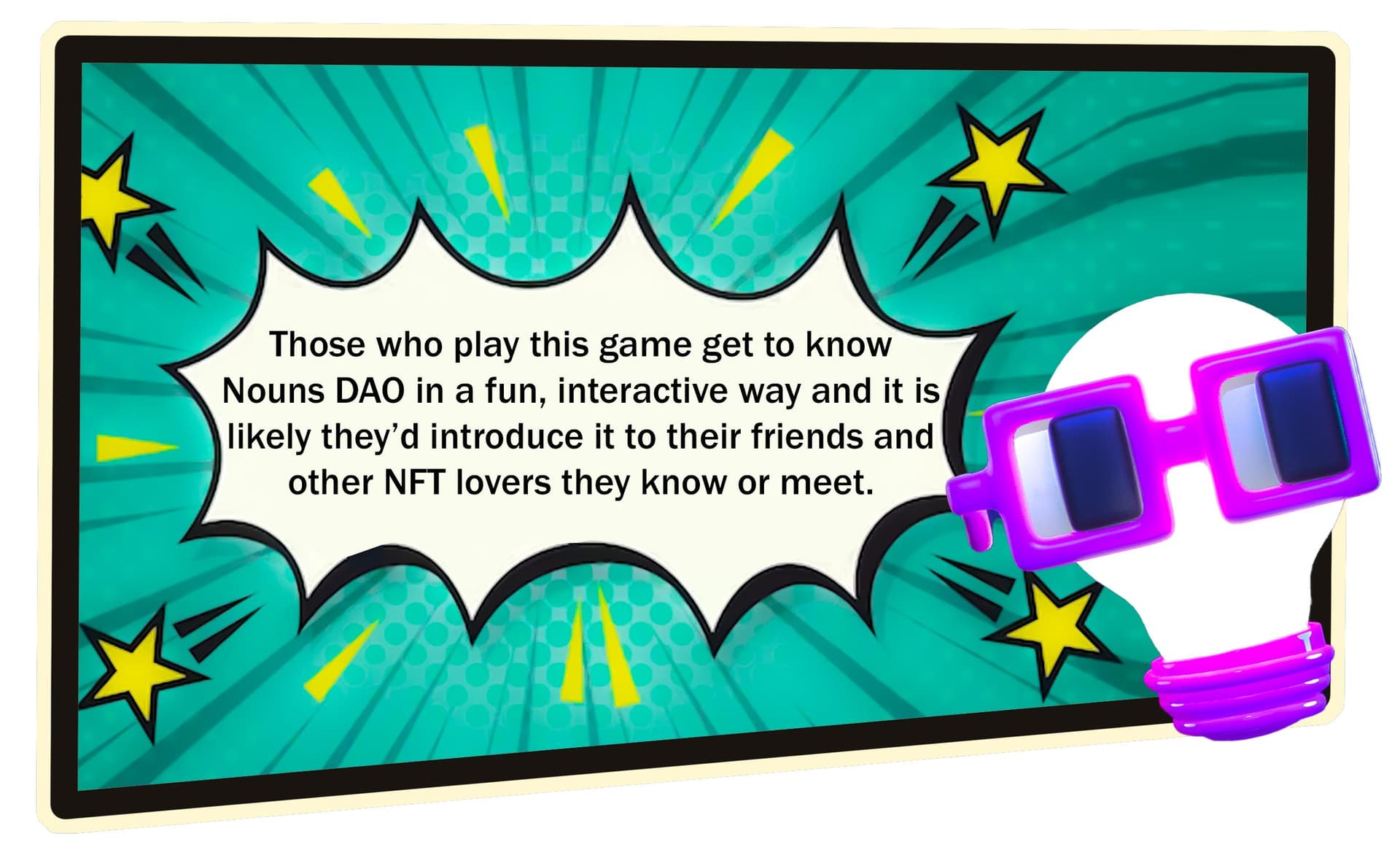 In the proposal, we outline a unique approach to game development that incorporates cutting-edge technologies such as NFTs and influencer marketing to generate buzz and revenue. By leveraging these strategies, our game will not only provide players with a fun and engaging experience, but it will also introduce them to the exciting world of Nouns DAO and cryptocurrency.