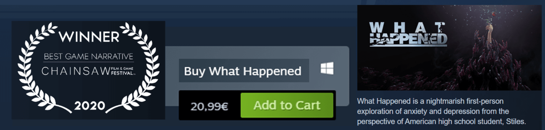 We're an experienced video game development team that created the psychological horror game "What Happened," which won the Chainsaw Award for its fantastic story. Following that success, we worked on various outsource projects.