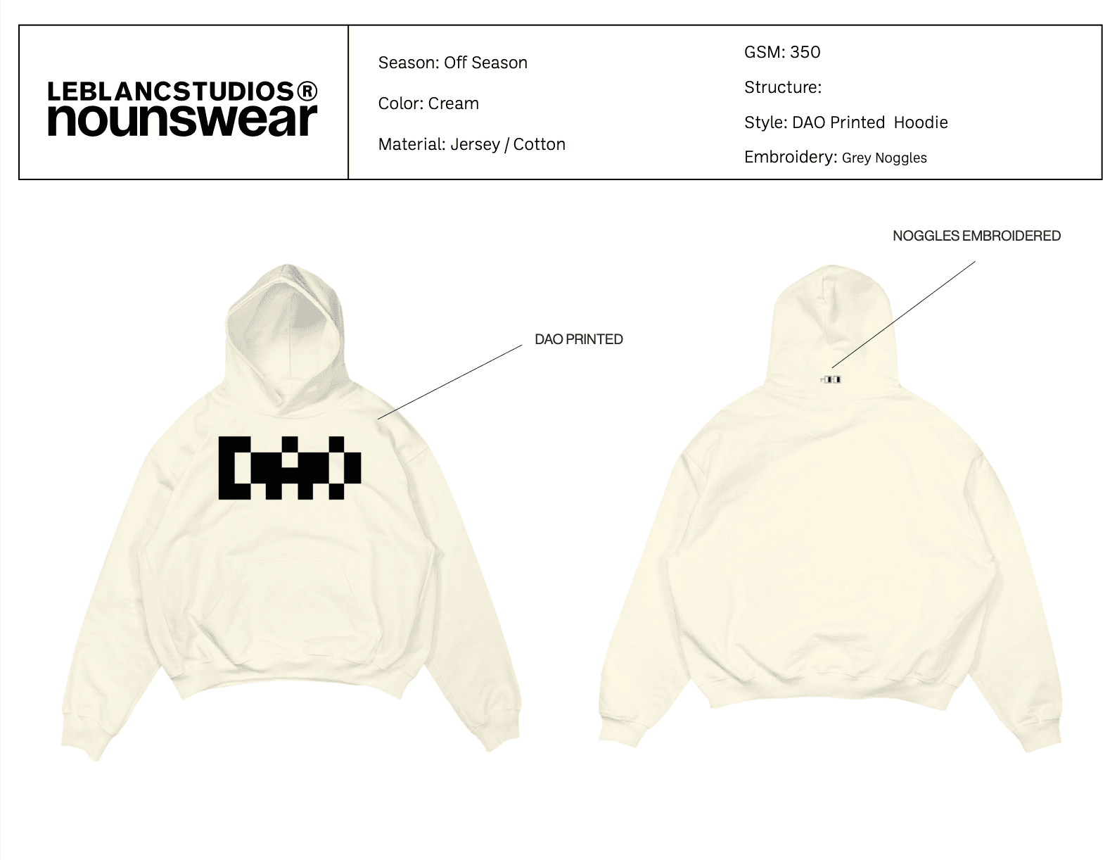 This phase aims to gauge the community's interest in the clothing line by producing a limited-edition, low-supply (100-200) collection. After the test drop, we'll be launching a 400 piece drop focused on the nounssentials line. Phase 1's marketing will be focused towards the Nouns community, twitter, and LEBLANCSTUDIOS' customer base. We will use promotional videos and clothing shoots to gather attention for the launch.