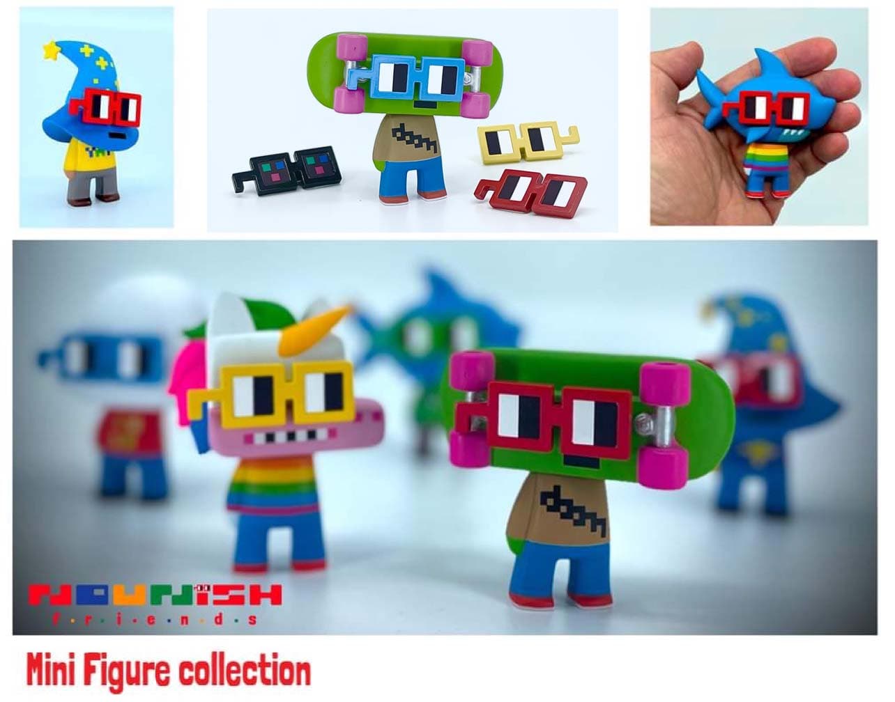 These colorful 3” tall mini figures are meant to be a fun, stylish, low cost, and non-crypto-based entry point into the world of “NOUNs.” Nounish Friends are uniquely styled modular figures which are packed into mystery boxes, eye-catching counter displays positioned for museum shops, high end retail and lifestyle shops worldwide.