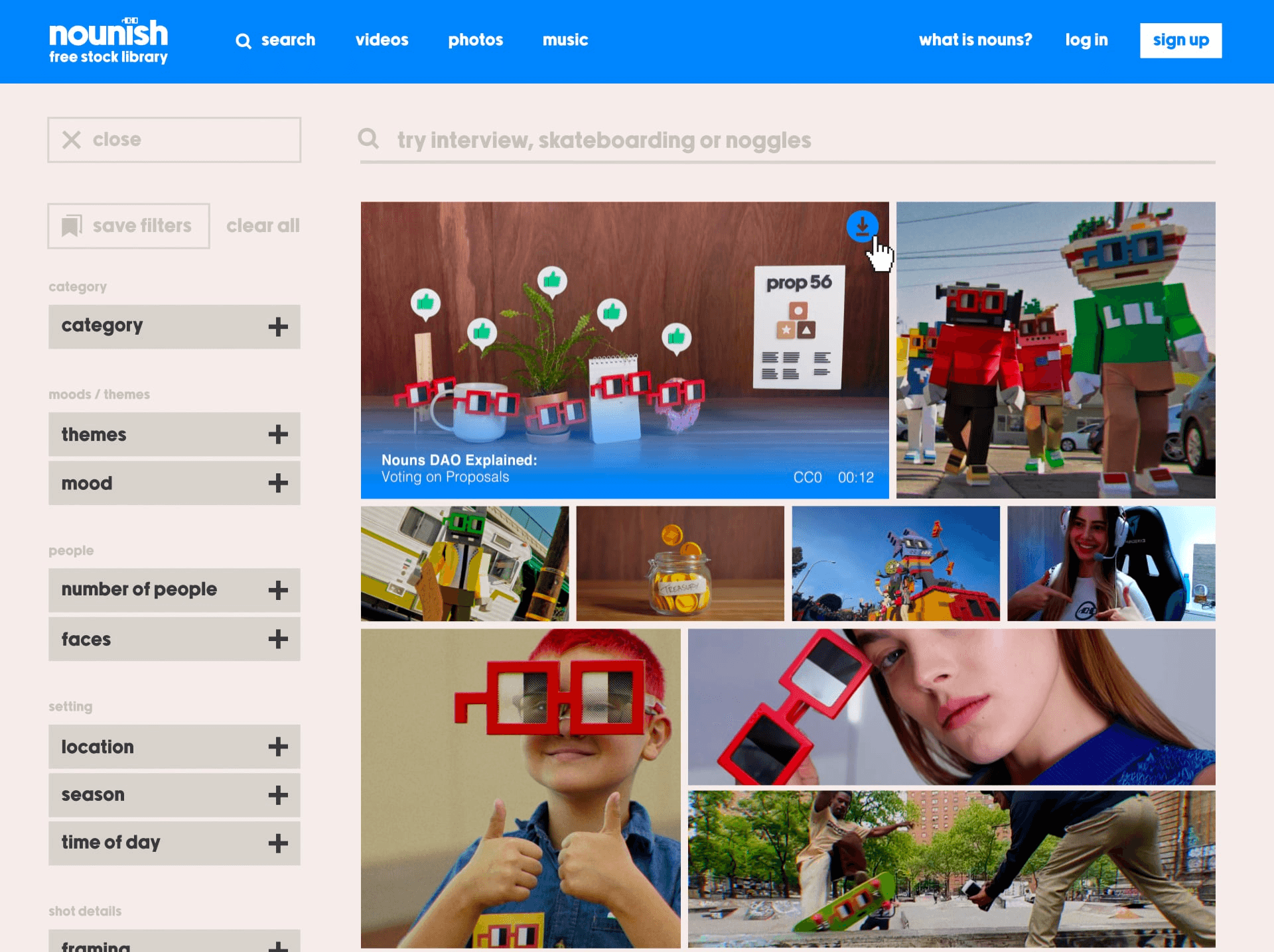 It will be searchable with tags and key terms, like a stock photo website but for Nouns media and all of it is CC0.