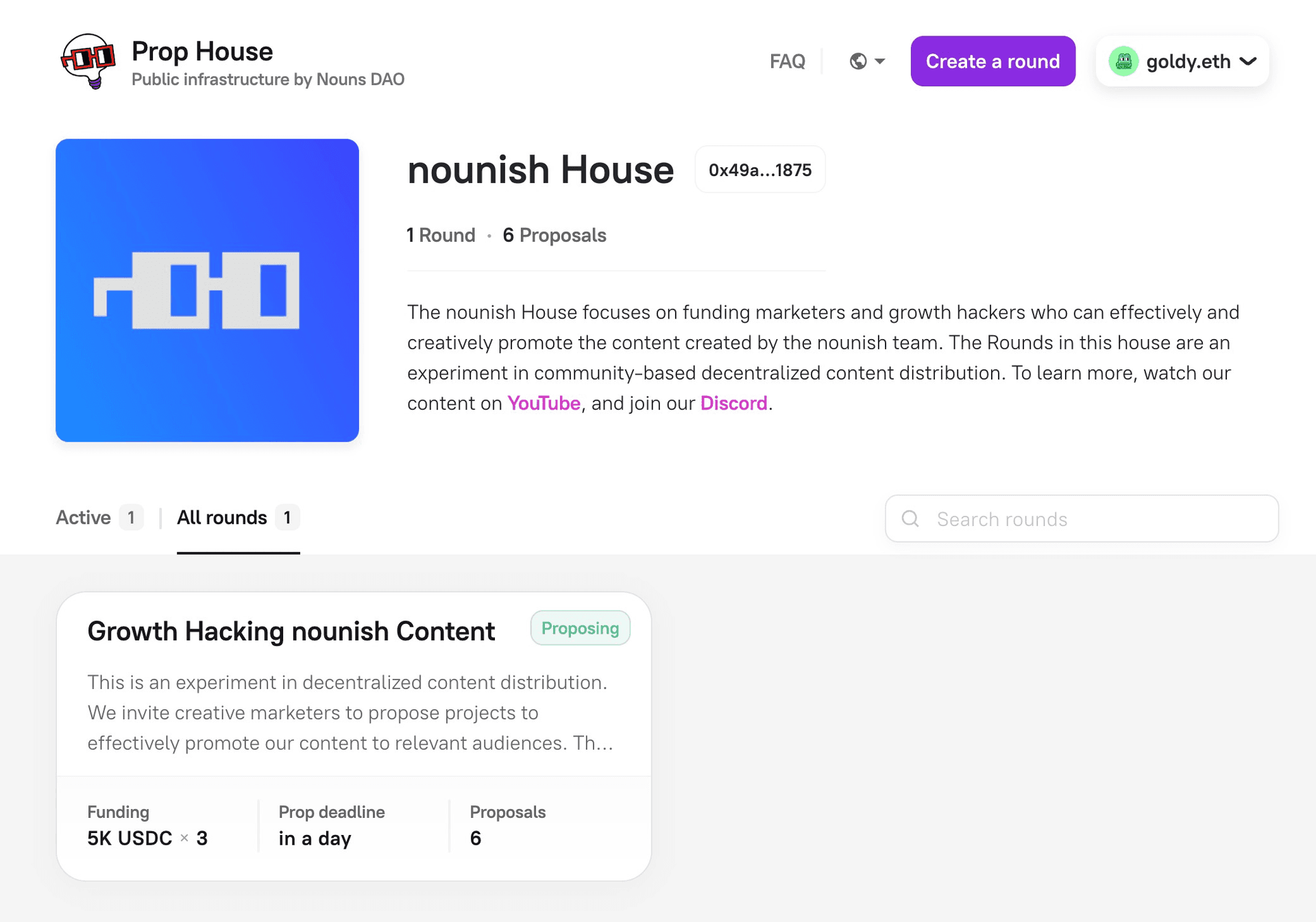 The first Prop House Round is live and we will be running more of these, both open and targeted rounds.