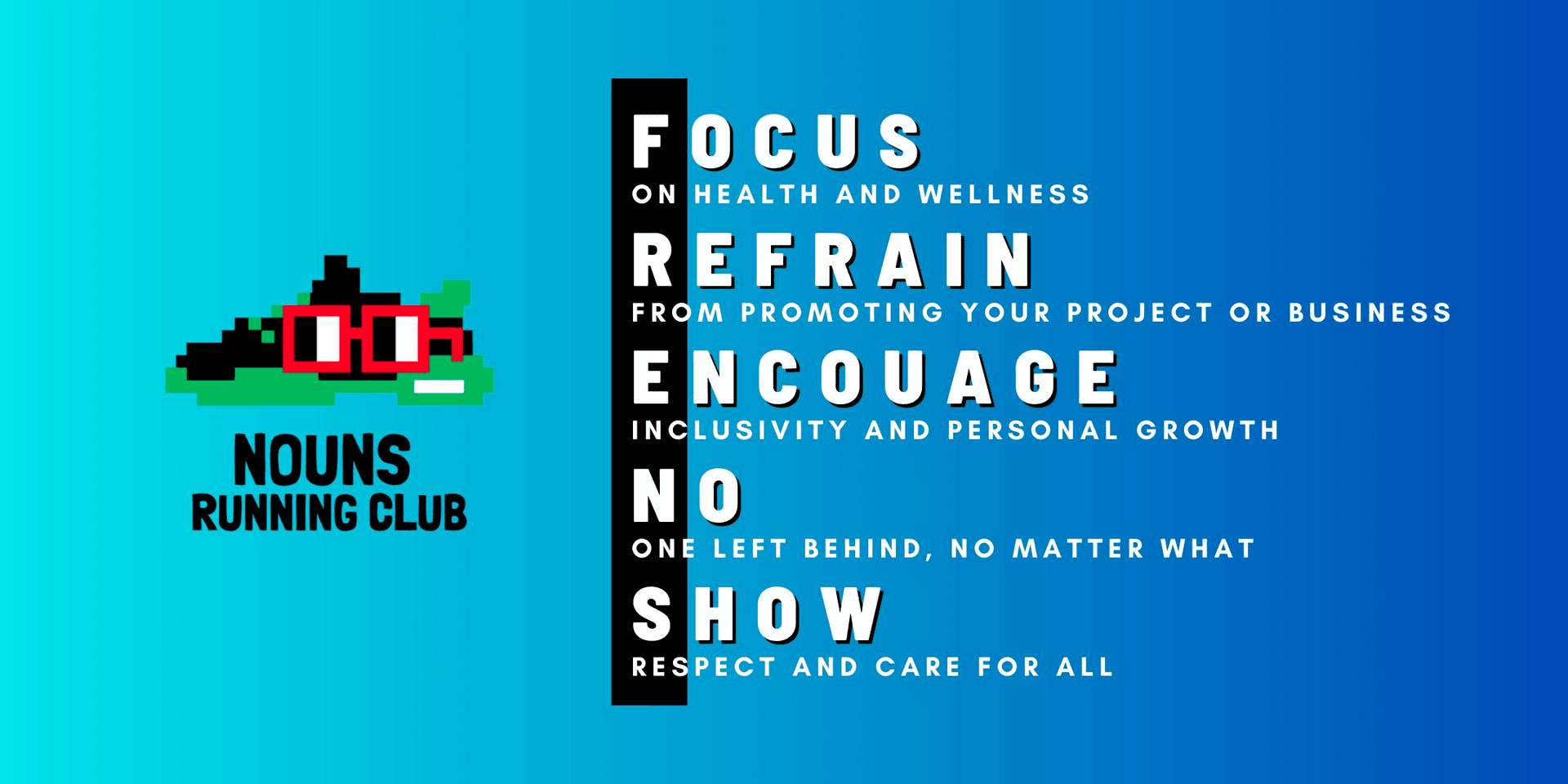 The Nouns Running Club was born out of a desire to challenge the prevailing partying stereotype of crypto events. We recognized the need to start a movement that promotes fun, fitness, and FRENship while showcasing the positive aspects of Nouns.
