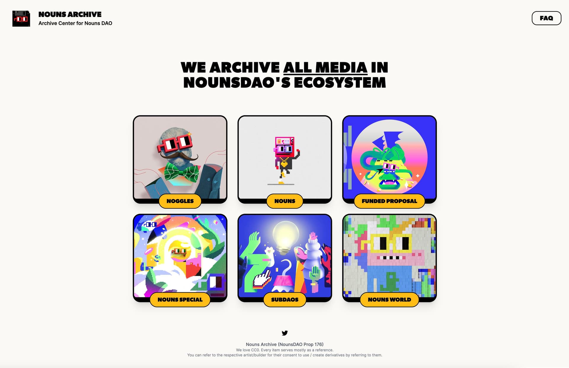 On December 3rd, we were funded of 32.28 ETH ($42K) to build an archive center which stores & display all media contents of Nouns DAO's projects & artworks and all the memes proliferations. It serves as the central repository for storing and displaying all data such as ;