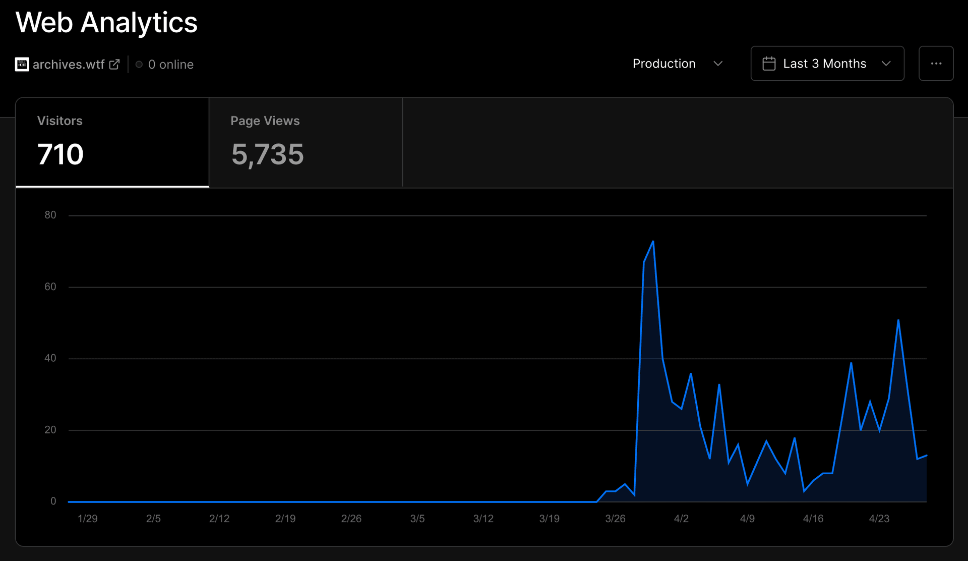 50 ETH to fund development of archives.wtf over the next 6 months (May '23-Oct '23).