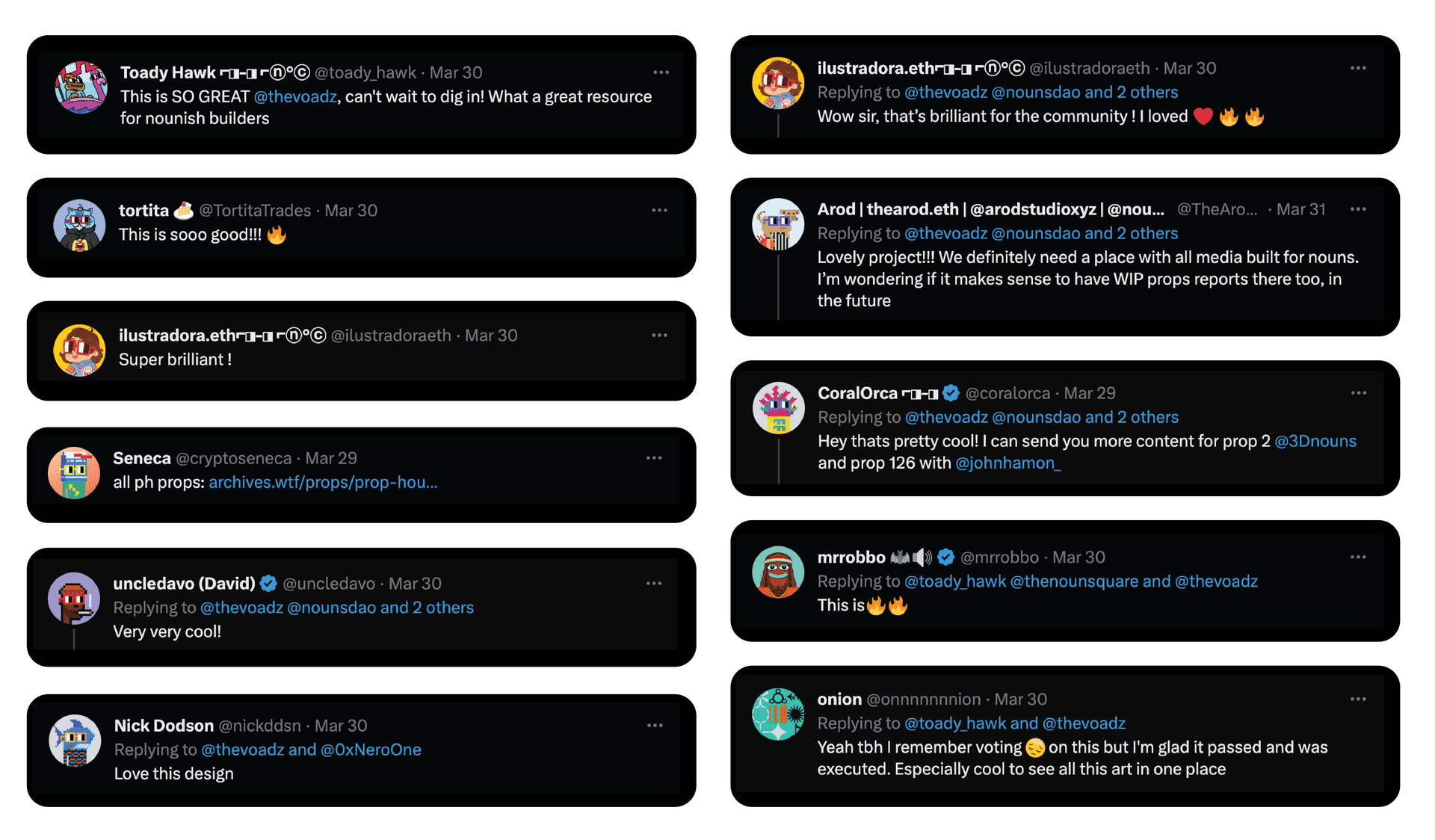 There is so much great Nouns content scattered across different platforms that went by everyday in our ecosystem. We aim to solve this by providing a central platform where all Nouns-related content all in one place and make it easier for everyone to find it.