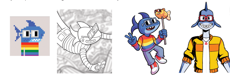 I’m also building a graphic style to present the development of the project to the public in a more entertaining way using videos and/or live streams. This way people can follow more closely the development of the graphic novel and can ask questions about nouns and their ecosystem.