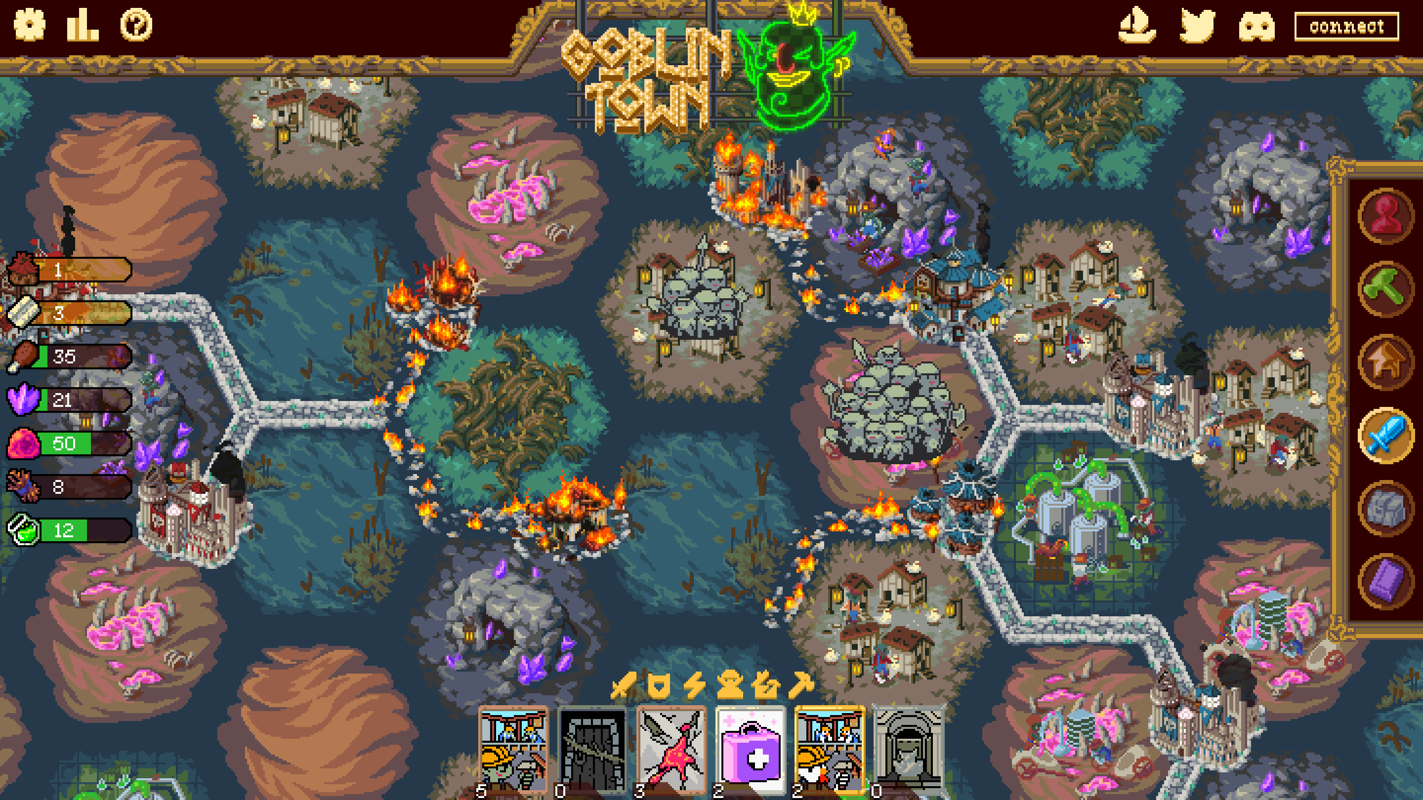 As a team, we recently led the creative and art direction for Battle for Goblin Town, an upcoming on-chain “Settlers of Catan” style game developed by Forgotten Runes Wizard’s Cult. During this project, we designed and produced all of the art assets, UI/UX, gameplay trailer.