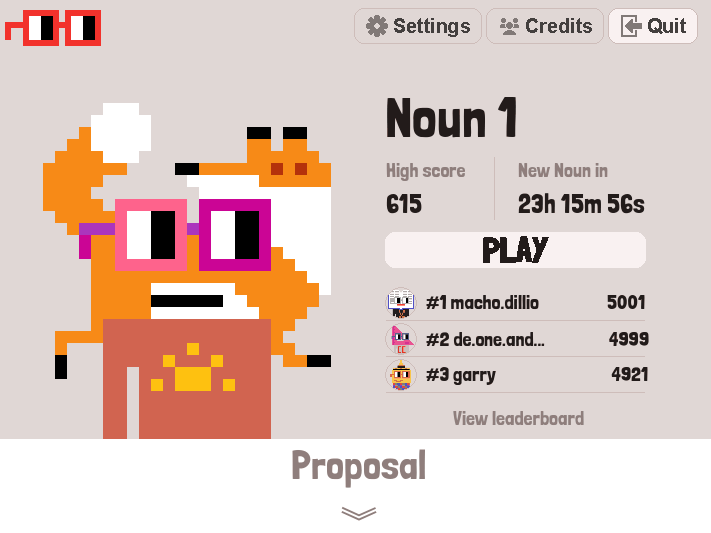 The One Noun, Every Day game mode will be the hook and anchor behind this game. We want to re-imagine the continuity and diversity of Nouns through the lens of a dynamic and captivating game for the masses.