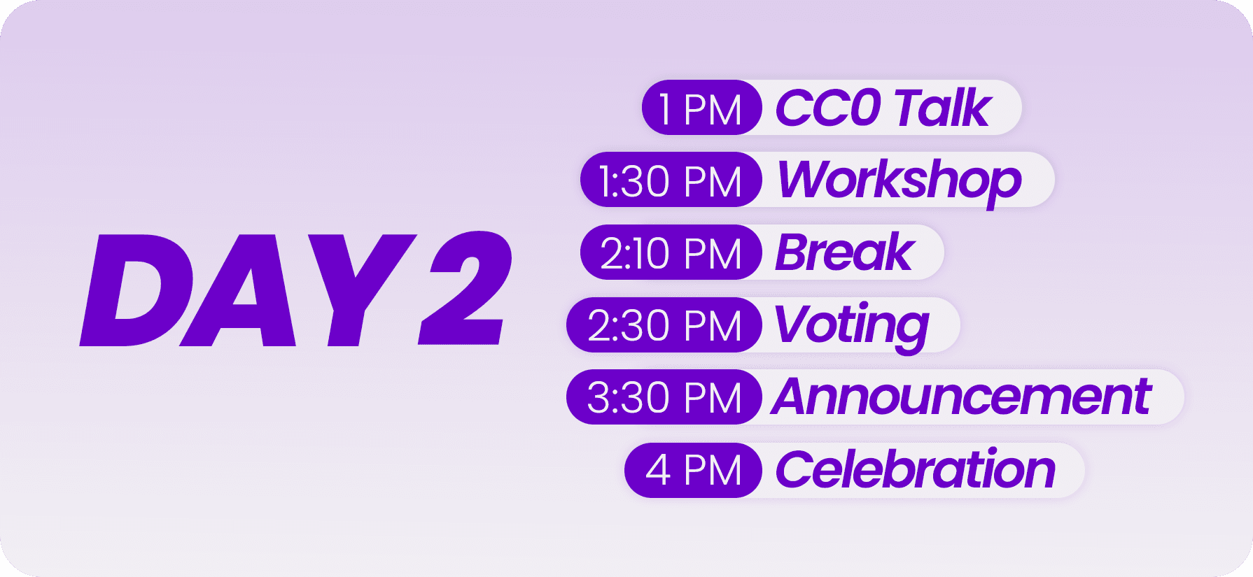 Participants will then have free time to write and submit their proposals, detailing the rounds they plan to set up in their new house on Prop House, utilizing the 2 ETH prize as a reward. After that, we'll kick off an afterparty, offering a perfect opportunity for communities to interact and engage with each other.