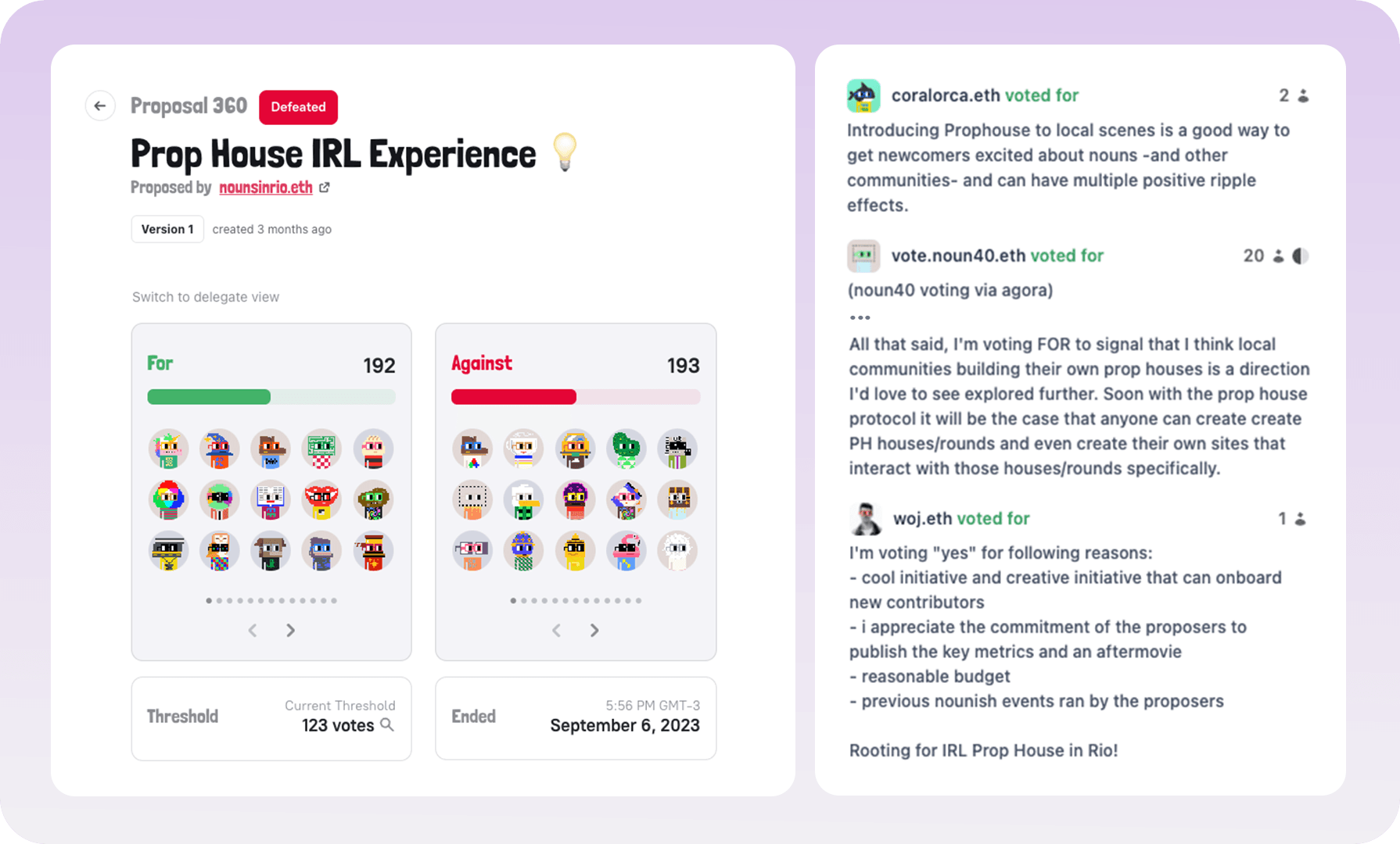 Prop House is an excellent entry point for builders in the Nouns ecosystem. The Nouns in Rio team is requesting 10 ETH + 10,500 USDC to create an immersive 2-day event and take Prop House IRL.