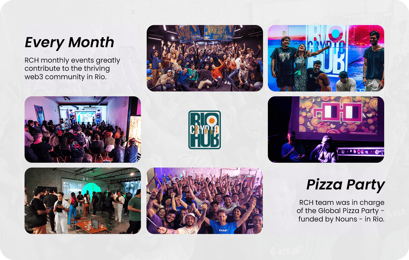 Rio Crypto Hub (represented by Douglas Miranda) - an initiative whose principle is to strengthen the web3 scene in the city of Rio de Janeiro, connecting people through monthly IRL events focused on the ecosystem and sharing weekly content on social media. In 2023, they successfully hosted 30 events.