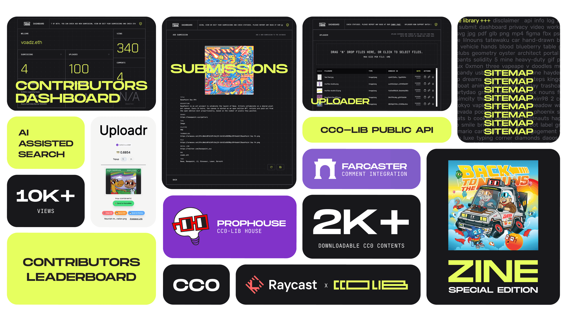 - CC0-Lib Zine Collection ; Issue 02-05 ; we want to continue to produce 4x exceptional zine issues in various formats, materials & themes packed with inspiring contents about the Nouns brand and their surrounding ecosystem