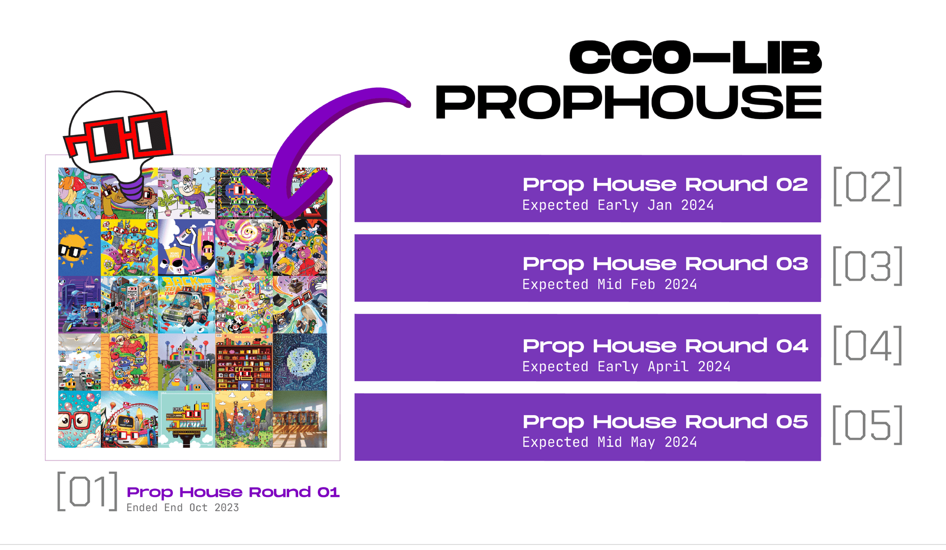 - we will continue to host 4x art-related open rounds of 1.5 ETH for each month (CC0-LIB Prop House) with no limitations on theme, medium or subject as long as it is nounish