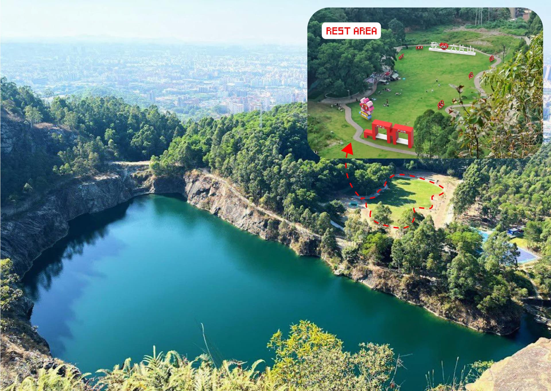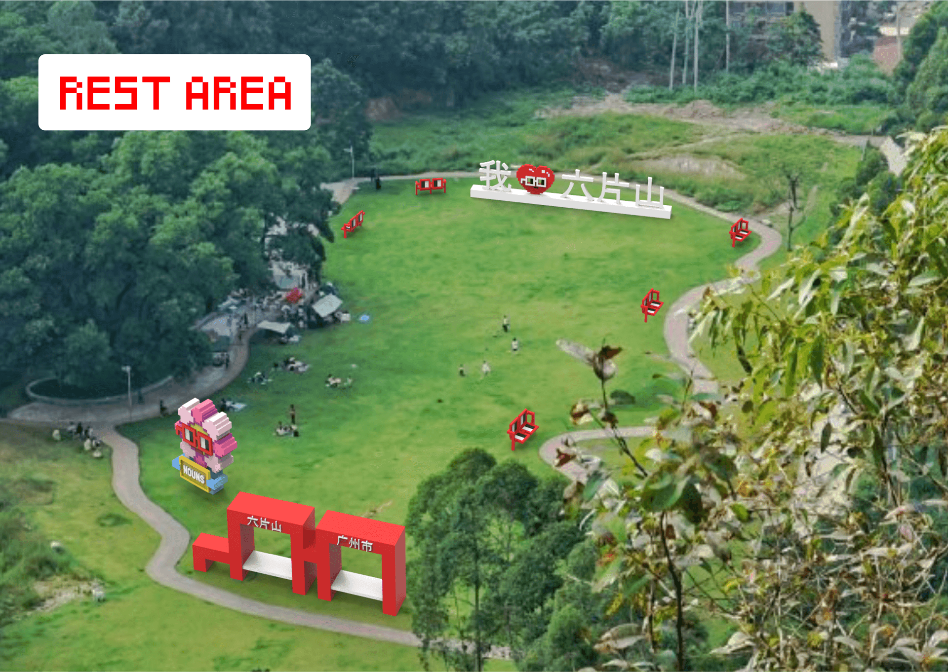 The rest area is located right next to the iconic reservoir (Tear of Guangzhou), making it the go to spot for visitors. Placing our Nounish infrastructure strategically at the rest area ensures functionality while creating a popular spot at Mt. Liupian. The spot would enhances Nouns' discovery along with virality as visitors shares their activities and photos on their social platforms.