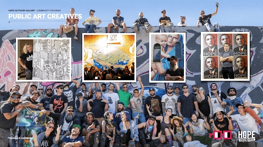 “The outdoor gallery concept is utopian, not because every artist gets along, but because it yields diversity by providing opportunity for those with creative drive and ingenuity rather than power and resources. Empowerment is infectious and the electricity from a space like the HOPE Outdoor Gallery creates a chain reaction of excitement and participation. Whether one is there to take an art class, take part in a charity event, party, or paint a wall, there is no question that the HOPE Outdoor Gallery is a community incubator.” Shepard Fairey