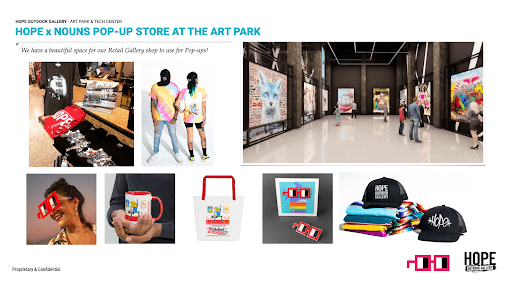 Onsite store that allows visitors to get all the latest Nouns merch and products throughout all the hosted HOPE events.